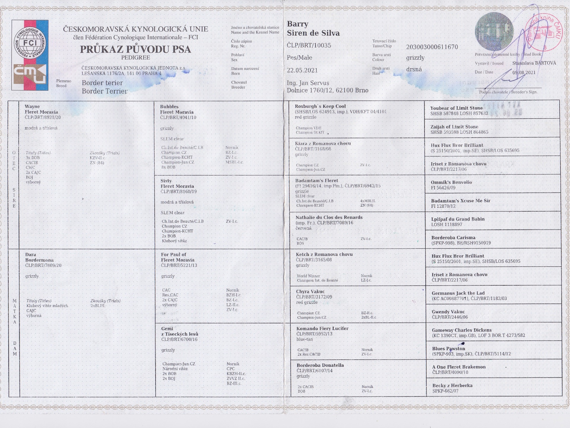Vítěz třídy Yearling na Cruft's 2023, European Winner 2025 Zkoušky ZV II.c., ZN 84b., ZVVZ II.c., LZ I.c., BZ II.c., MSBLT II.c./II.c.